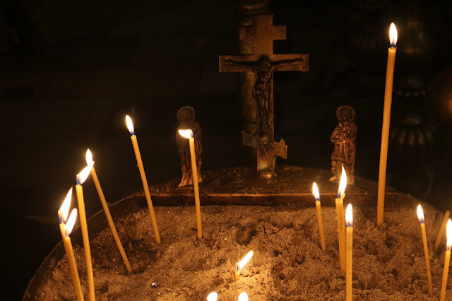 | On my last evening in Sofia, I went for another walk and happened to see this doorway. I walked around the corner, and discovered another entrance to the same tiny church. It is Sveta Petka Stara (the old St.Petka church), built in 1241. It was unbelievably tiny, and beautiful. When I entered, the cantor was singing, and it was breath-taking. |